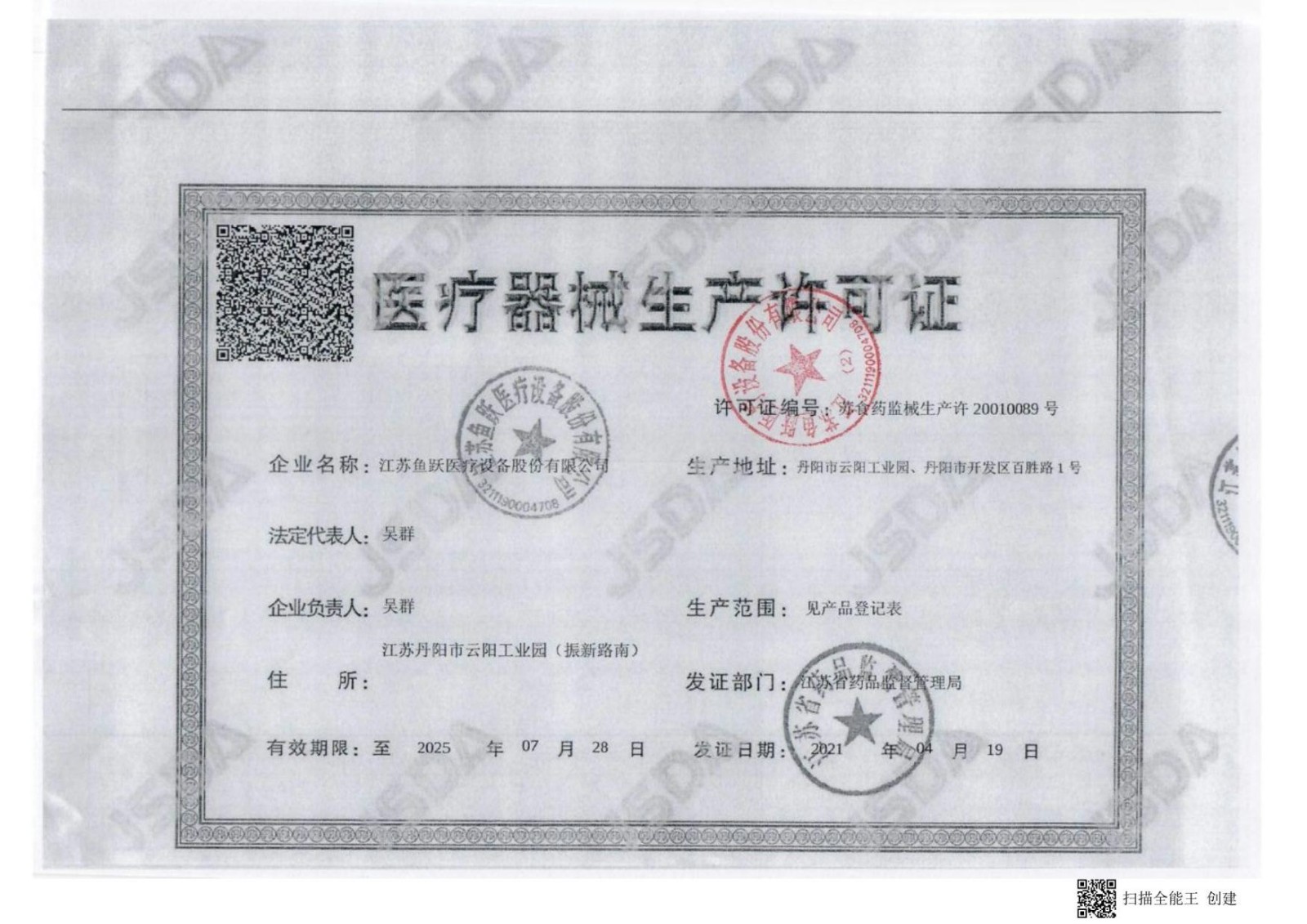 医疗器械经营许可证